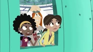 "Aha, a woodpecker!" Aviva and Koki saying something while watching a woodpecker dril holes into the Tortuga's outer wall