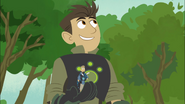 Martin in Gray Squirrel Power in front of a woodpecker's hole