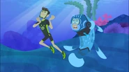 In "Blowfish Blowout", Martin activated Blowfish Power to puff up and stop Puffy from being sucked up into Donita's yacht. After successfully clogging the Hydro Vacuum, Dabio began trying to fix the pump manually by sucking air through it, this resulted in Martin getting stuck in his mouth. Martin then struck a deal with Donita: in return for deflating and leaving Dabio's mouth, she would have to give up Puffy, who had been turned into a blowfish crown. Martin deflated as promised, but Donita refused to keep her end of the deal. After Chris's water balloon explosion plan knocked Puffy off of Donita's head Martin then turned the Pose Beam for Puffy off and jumped into the water alongside him.