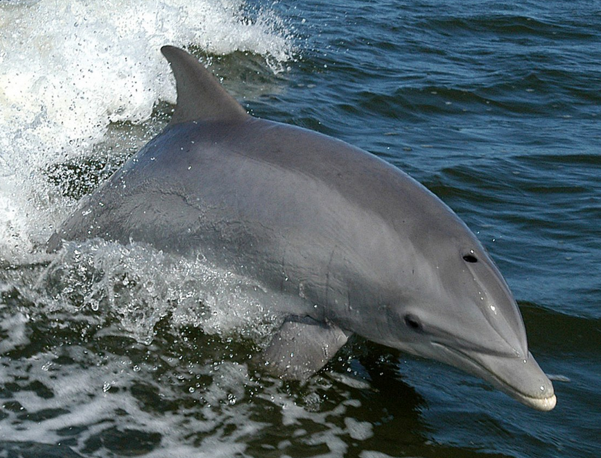 The Bottlenose Dolphin (Tursiops truncatus), also called the common bottlenose dolphin, or Atlantic bottlenose dolphin, is the most well-known species from the family Delphinidae. They are highly intelligent and have a sophisticated language of clicks, whistles, and body postures that marine biologists have been trying to decipher for years. They are also very coordinated.