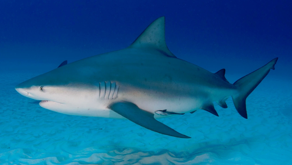 The Bull Shark (Carcharhinus leucas) is a species of shark found in both fresh and salt water worldwide. While it spends most of its life in the ocean, it is capable of swimming in freshwater for long periods of time. This is due to a "salt exchange system", which prevents too much salt from leaving its blood cells, which would kill most other sharks. Its name comes from its stocky appearance and its behavior of charging into its prey like a bull.