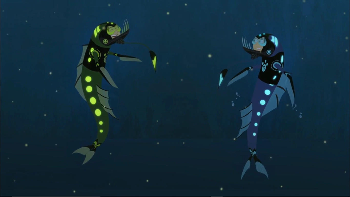 In "Creatures of the Deep Sea" Chris and Martin activated Dragonfish Power to fight off a colossal squid attacking the Pulponaut, and spy on Gourmand's plan to cook deep sea creatures.