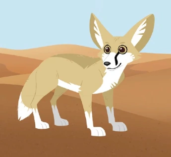 The Fennec Fox (Vulpes zerda), also called the desert fox or fennec, is a small crepuscular fox native to the Sahara Desert, the Sinai Peninsula, Arava desert, and the Arabian desert. Its most distinctive feature is its unusually large ears, which also serve to dissipate heat. Its name comes from this species' name in Arabic: "fanak" (فَنَك). The fennec is the smallest species of canid. Its coat, ears, and kidney functions have adapted to high-temperature, low-water, desert environments to keep cool and store water water in times of extended dry seasons or drought. Also, its hearing is sensitive enough to hear prey moving underground. It mainly eats insects, small mammals, birds, snakes, and lizards.