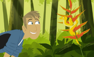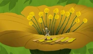 Chris is bouncing on a stamen and he is saying: "Who needs seat belts when you got a sticky pollen seat to sit on?"