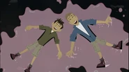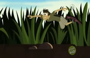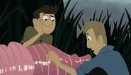 Chris isn't noticing that Martin is getting flattened by a bullfrog.