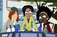 Aviva, Koki and Jimmy are communicating with the two Wild Kratts kids Ellie and Katie.