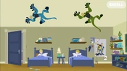 Chris and Martin in Gecko Power are running to the Wild Kratts kids's room.