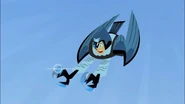 Chris in Falcon Power is diving down to avoid Gourmand's dangerous dough balls.