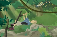 In the lowland tropical rainforests of Central America, Chris is climbing a cliff to test out a new rope created by Aviva. However, the rope snaps. Chris tries to safely land on the ground, but all his safety gear fails, and he ends up on Martin. Then a golden orb-weaver spider descends upon Chris's face, which Martin names Orbit. Knowing that spider silk is a tough and lightweight natural material, the Wild Kratts get to work on improving their climbing gear. Meanwhile, at Donita Donata's mansion, Donita, frustrated with her current fabrics, gets trapped in a spider web. Liking the texture she orders her henchman, Dabio, to take her to Central America to acquire spiders to gather more silk to make dresses.