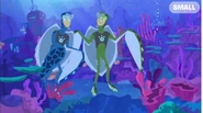Chris and Martin in Sea Turtle Power are swimming through the water.